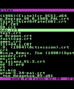 Stockez vos fichiers CRT (cartouche), PRG (programmes) ou D64 (images de disquettes) sur une carte MicroSD et utilisez le lanceur intégré de la cartouche Kung Fu Flash pour y accéder.