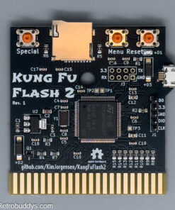 KungFuFlash2 est le grand frère de KungFuFlash. Il dispose d’un microcontrôleur plus rapide avec plus de mémoire et de broches d’E/S, ce qui permet d’ajouter des fonctionnalités supplémentaires.
